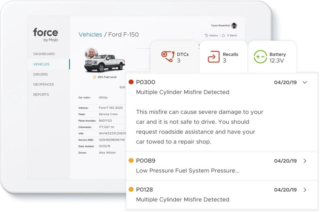 Force Fleet Tracking keeps downtime to a minimum by staying on top of fleet health and maintenance. Our system monitors each vehicle’s engine diagnostics, battery status, fuel level and recalls and alerts you of issues.